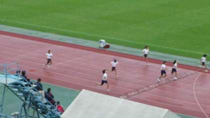 なお安全面を考慮して,走り高跳びと走り幅跳びが中止となり,それらにエントリーしていた子どもたちは,100メートル走を走っています。