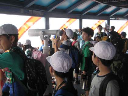 地上100メートルの展望室から見下ろす京都市内の様子をみて,