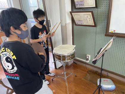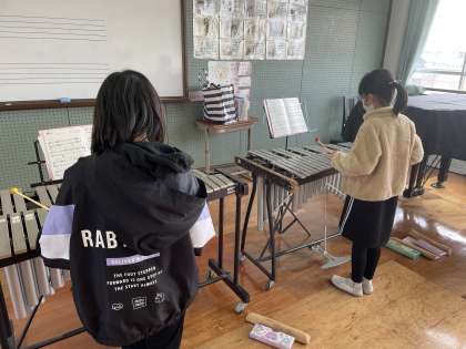 集中して練習しています!「今のよかったよ」「きれいな音だね」と同じ楽器の友達と話したり、違う楽器の友達に感想をもらう姿もみられました!