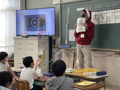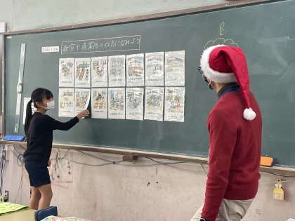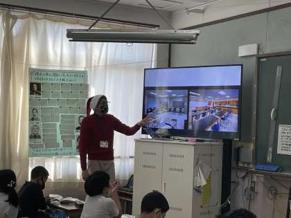 アリオーラ先生と学習しました!なんと、サンタの帽子をかぶって来てくれました!学校の部屋の名前や道案内の仕方を教えてもらいました!日本の学校とアメリカの学校の違いも聞くことができました!!アリオーラ先生との学習は毎回とても楽しみなので、次が待ち遠しいですね!