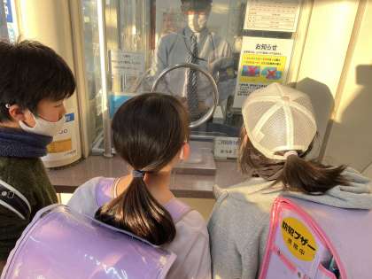 今年の人権標語を、藤ノ森にあるお店や駅などいろんな人が訪れる場所にはってもらうお願いにいきました!お願いをする前はとても緊張していた様子ですが、快く人権標語を受け取っていただき、子どもたちにも笑顔が見れました!この人権標語をみて、人を大切にすることや人権のことについて考えていきたいと思いました!