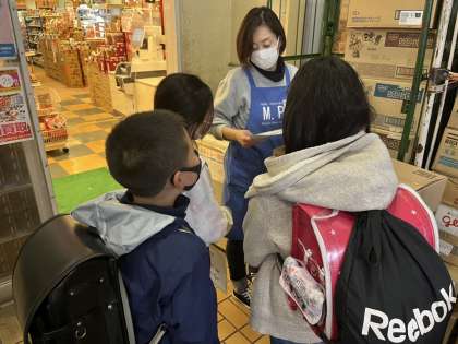 今年の人権標語を、藤ノ森にあるお店や駅などいろんな人が訪れる場所にはってもらうお願いにいきました!お願いをする前はとても緊張していた様子ですが、快く人権標語を受け取っていただき、子どもたちにも笑顔が見れました!この人権標語をみて、人を大切にすることや人権のことについて考えていきたいと思いました!