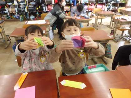 休み時間に折り紙や読書をして過ごしています!