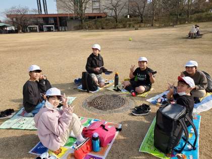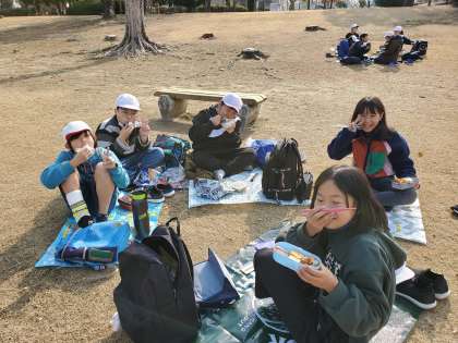 作ってもらったお弁当はとっても美味しいな〜と,子どもたちはにこにこ笑顔で食べていました!天気も良くて,ポカポカと暖かかったです。