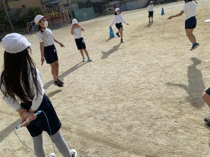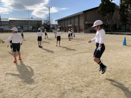 ハンドベースが終わり,ゆっくりかけ足となわとびの学習が始まりました。