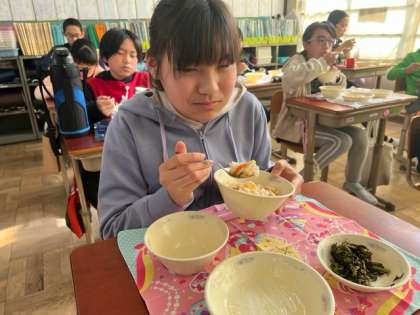 どんぶりの具って何でも美味しいよなぁと,味わって食べていました♪小学校の給食を食べられる日もどんどんと減ってきました…