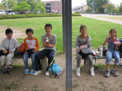 ほとんどの子が立命館大学でお弁当を食べました。学園祭シーズンで,大学生たちとダブルダッチをするなどサークル活動の見学もできました。