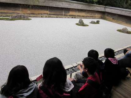 市バスの一日乗車券を利用し,グループごとに自分たちで計画した経路で,金閣,銀閣,竜安寺,二条城,北野天満宮,東本願寺などをめぐりました。