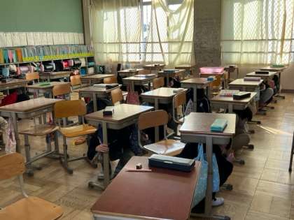 緊急地震速報受信システムによるシェイクアウト訓練がありました。中間休みでみんなそれぞれの場所にいましたが,しっかりと一次避難できたようです。自分の身は自分で守るように,いつでも落ち着いて避難していきましょう。