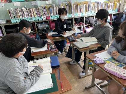 「いや,ここにかいてあるから」や「次にって書いてあるから」など活発な意見交流がされていました。