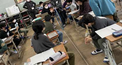 円の周りの長さ「円周」ってどうやって測るのか,みんなで考え,実際に転がしてはかりました。自然と真ん中に集まり,メジャーを伸ばしたり押さえたり,協力しながら円周を測りました。