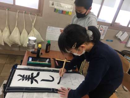 書き初めをしました!2人組になって、書いている友達にアドバイスや手助けをしながら進めている様子が見られました!一つ一つ丁寧に書いていました!