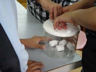 真空状態を作った中に風船やマシュマロを入れるとどうなるかなどを