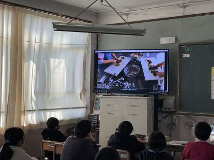 給食調理員さんがどのようにして,給食を作ってくださっているのか動画をみて学びました。一つ一つ手作業で作ってくださっている様子や,おいしい給食になるための工夫をたくさん見つけることができ,「すごいな」,「だからこんなにもおいしいんだね」と話していました。