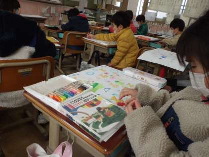 自分が乗ってみたい乗り物や,行きたい場所を描いています