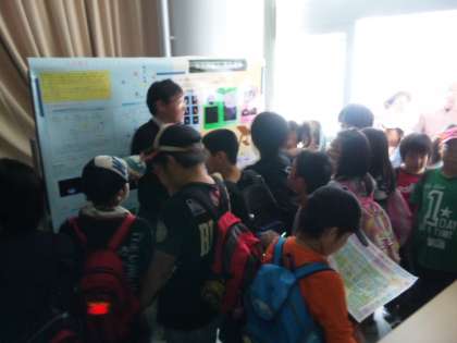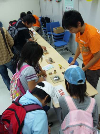 本日,おもしろサイエンス部が,「京都大学宇治キャンパス公開2011」へ出かけています。子どもたちは,興味津々で「有機化合物を光らせるブース」や「磁石で遊ぶブース」などに参加しています。