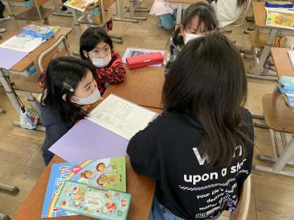 三年生最後のユニットでは,読み聞かせを子どもたち自身で行いました。
