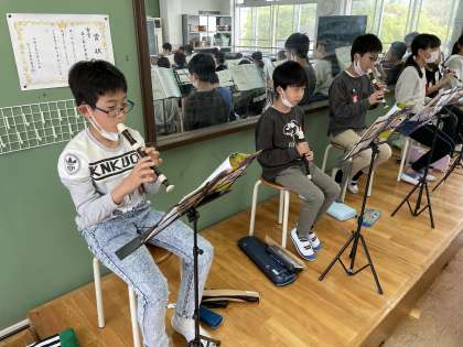 音楽の学習がスタートです!早速リコーダーを吹き始め…高学年は難しい曲にも挑戦していきます。がんばっていきましょうね。
