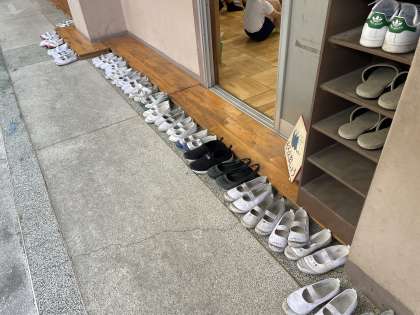 身体測定がありました!岡本先生から毎日元気に過ごすためにどうすればよいのか、お話してもらいました!また、保健室に入る前に自分たちで上靴をきれいにそろえることができました!