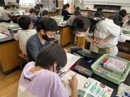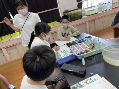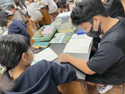 ものが燃えるには酸素・窒素・二酸化炭素どれが関係しているのか予想しました。いろいろな考えがグループから出てきました。実験してみるとどうなるかな?