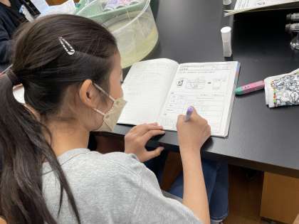 実験ができたらすぐに考察!結果から分かることをノートにすぐまとめていました。