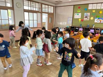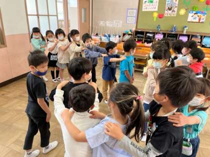 音楽の時間,「かもつれっしゃ」をしました。みんな,なかよくなれたかな?