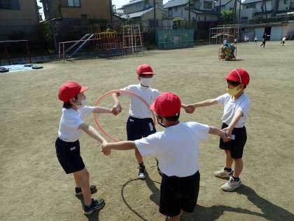 フープくぐりやまねっこかけっこなど,楽しみながら,体を動かしました。