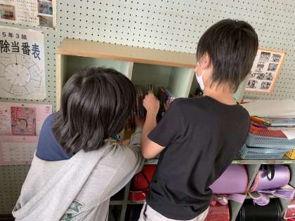 学級文庫を片付けていると,逆さになっている本を見つけて子どもたちが綺麗にしまってくれていました。次使う人たちが気持ちの良い状態で使えますね。見ていないところでも頑張っていました。ありがとう。