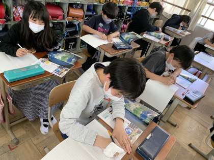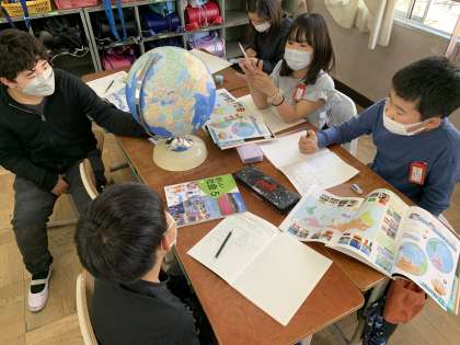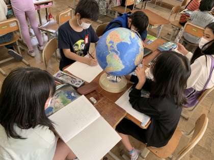 地図とは違い海や陸の実際の大きさを比較できるので,子どもたちも興味津々で見ていました。