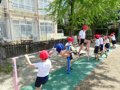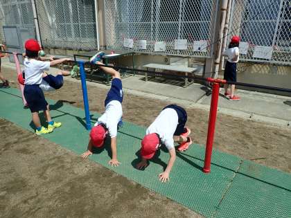 体育科では,鉄棒に取り組みました。
