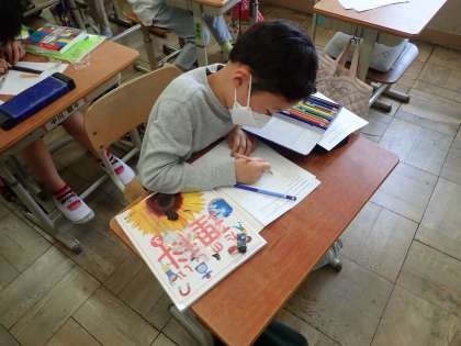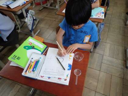 4種類の種を観察した後,そこから2つ選んで,観察カードに書きました。