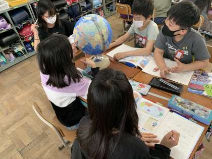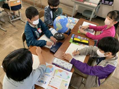 今日は地球儀の見方について学習しました。