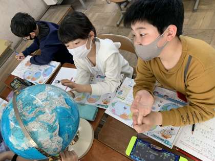 今日は地球儀の見方について学習しました。