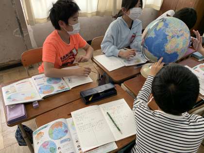 経線,緯線について知り,日本の場所を調べていました。