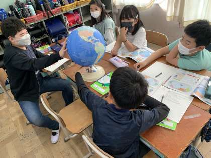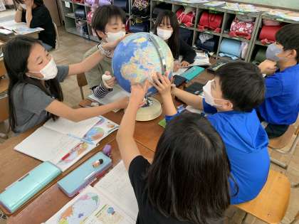 今日は地球儀の見方について学習しました。