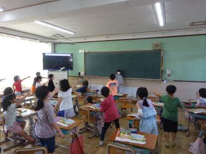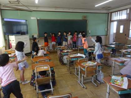 かくれんぼで,遊んでいる様子を思い浮かべながら歌いました。