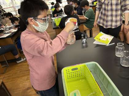 ろうそくを燃やす前と燃やした後の集気びんの中の空気について,石灰水を使って調べました。