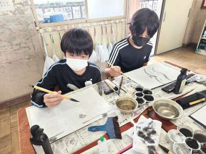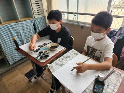 子どもたちは色々試しながら,自分の表したいものを考えていました。「こうやって見ると,ヘリコプターに見えるな・・」「私はうさぎを描きたいな・・」など,悩みながら描き,素敵な作品ができあがっていました。