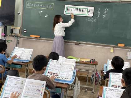 鍵盤ハーモニカの学習がはじまりました!ゆびくぐりやゆびまたぎを使って、鍵盤をおさえる方法を知りました!スムーズに指を動かせることができるように練習していきます!
