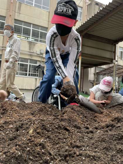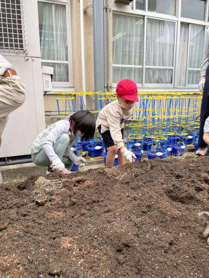 今年のなないろ畑で育てる野菜第1弾として,ポップコーンの種を植えました。みんなで大切に育て,収穫を楽しみにしたいと思います。