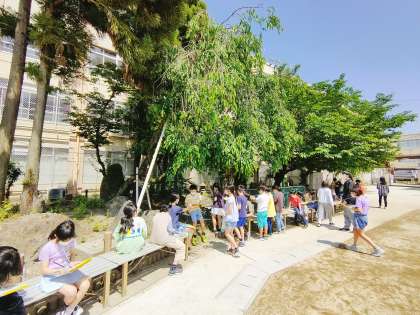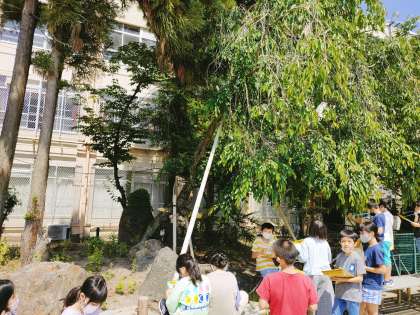 理科ではサクラの様子を引き続き観察しています。4月と比べると花が散り,たくさんの葉っぱが!大きさ,形などなど発見がたくさんでした。