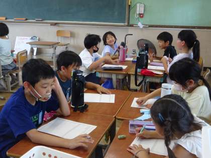 学校に戻ってからは振り返りをしました。「毎日歩いているけど、じっくり見ていくと新しい発見があって、楽しかったよ!」などと交流する場面も見られました。