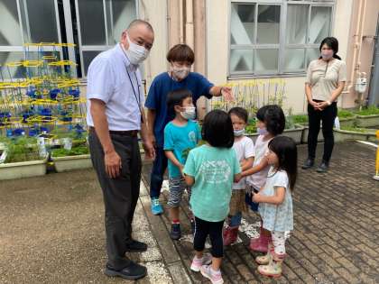 深草幼稚園の年長組の皆さんが、大切に育てている野菜やお花を持ってきてくれました。「大切に育ててきたので、水をあげてね」と、校長先生に伝える姿はとっても立派でした!来年の今ごろは1年生です。あっという間に一年なんて経ってしまうんだから不思議なもです。