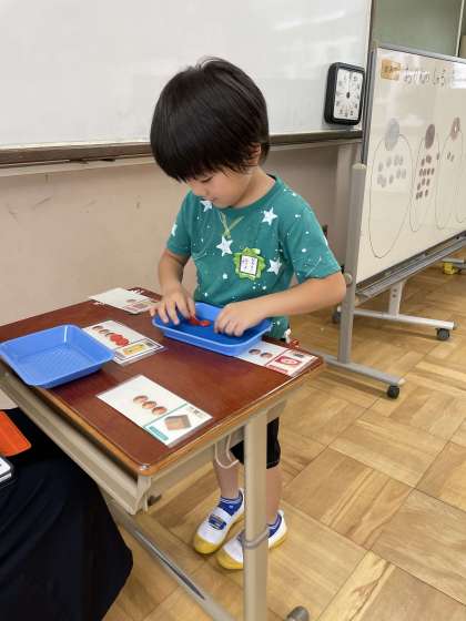 算数で,グループに分かれてお金の学習をしました。お金の選別,持っているお金でこの商品が買えるか,チラシを見て商品カードを作るなど,それぞれの学習進度に合わせて学習を進めました。実生活でのお買い物に生かせることができたらいいなと思います。