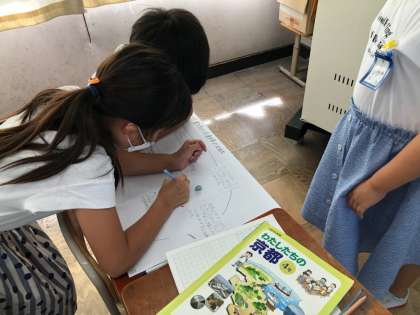 平成25年の台風18号が京都市を襲った時の事例をもとに,災害時の京都市の対応を調べ,グループごとにまとめました。どのグループもあれこれと話し合いながら,まとめを通して,理解を深めることができました。