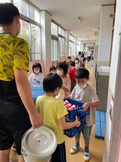 小学校生活が始まり、給食を準備して食べることって、想像以上に難しいことなんです。2学期になると、返却もらくらくこの通り!1年生、頑張っています。