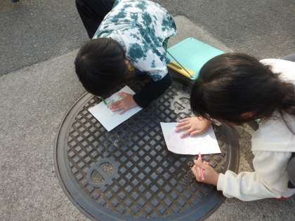 子どもたちは,自分たちの周りで一生懸命でこぼこを探しました。