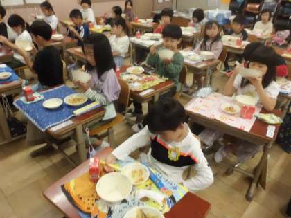 色々なお話をしながら,毎日の給食を楽しみにしています。