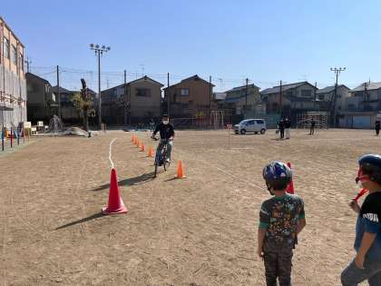 13日(土)におやじの会とPTAの皆さんに低学年(1〜3年生)を対象に自転車教室を開催していただきました。毎年、学校でも4年生を対象に自転車教室を行っています。今回も警察の方から講師を招き、参加した児童に安全な自転車の乗り方を教えていただきました。普段、乗っている自転車のより安全な乗り方を学び、これからも安全に気を付けてほしいと思います。