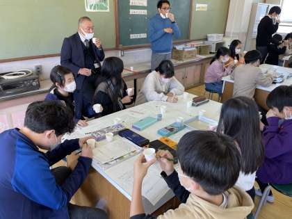子どもたちが普段何気なく飲んでいるだしについてよく考える学習でした。